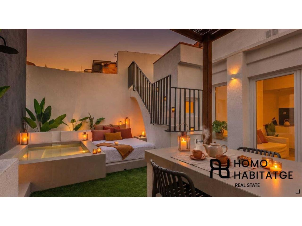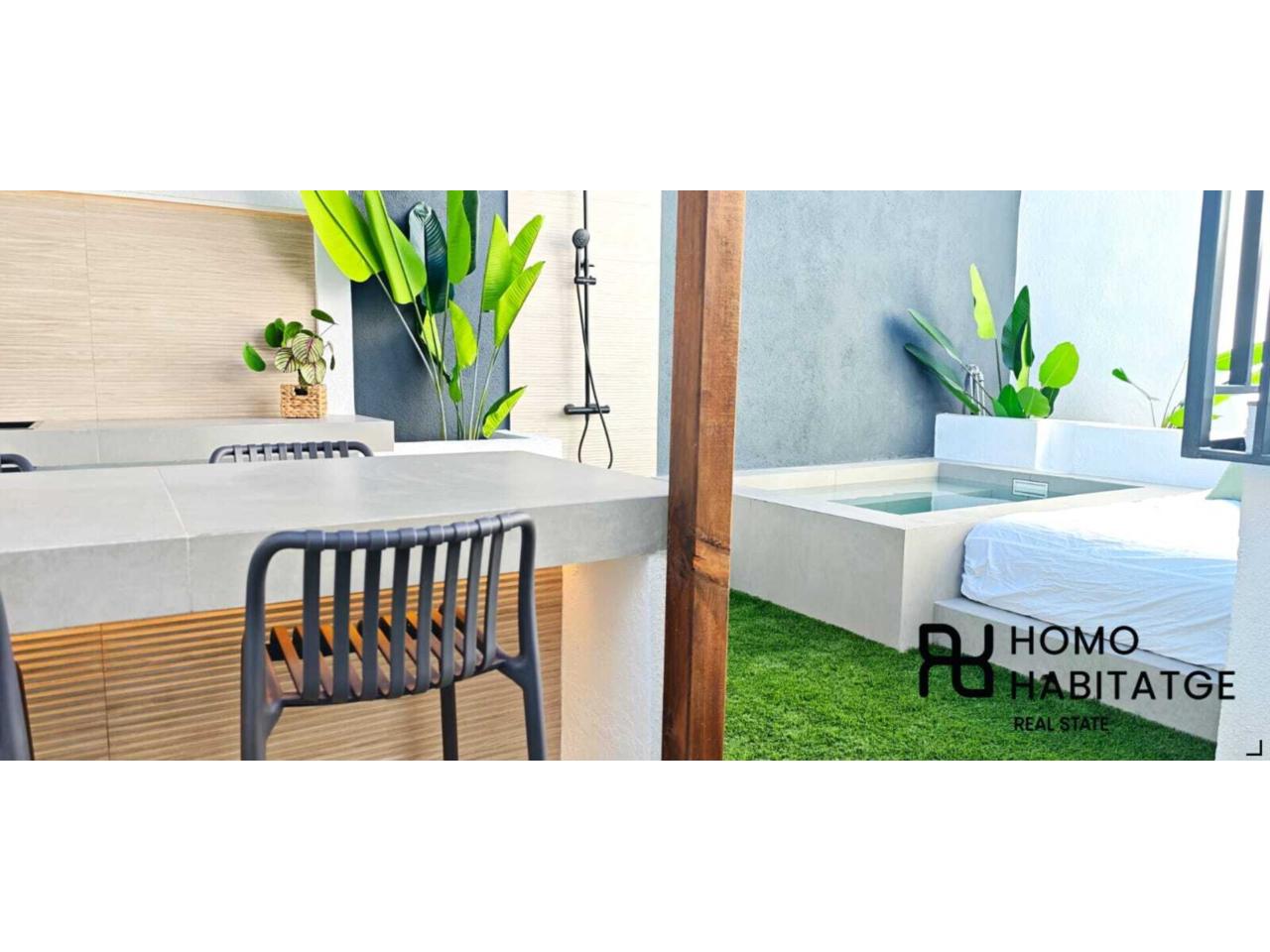 Patio/Jardín Privado (20m²): Tu espacio de desconexión al aire libre. Disfruta de una pérgola para cenas a la luz de las estrellas y un jacuzzi para relajarte después de un largo día.